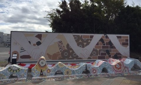 常滑商工会議所青年部の「タイルアート事業」完成式典に参加しました。 常滑焼まつりの50回目を記念した事業で、600人を超える子供たちに参加してもらい、27000枚を使いタイルアートを完成させました。 設置場所はボートレー…