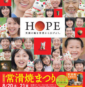常滑焼まつりのポスターが市観光協会のHPにありました。 なかなか良い出来のポスターですねぇ。 やっぱり笑顔はいいもんです! どうぞ多くの皆さま、この夏は常滑に遊びに来て下さい! 第45回常滑焼…