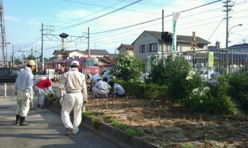榎戸駅にある花壇に花を植えました。 区の役員の方、地元建設業の方、LIXIL榎戸工場の方でやったらあっという間に植える事が出来ました。 これからの水やりが大変ですが、キレイに花咲く日がたのしみ…