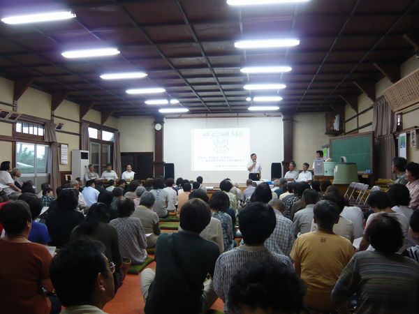 当地区では合計3回行われますが、今回は初めての開催で150余名の地域の方々に参加いただき、1時間30分みっちり会が行われました。
