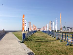その後、今度の一般質問の事もあり、りんくうビーチの様子を見に行きました。アイアンマンの大会前日という事もあり、比較的きれいな状態でしたし、ゴール地点の作業が着々と行われていました。