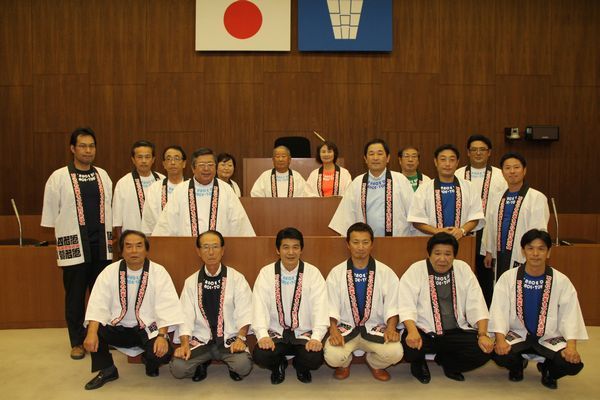一般質問初日が終わり、本会議終了後に議場にて撮影を行いました。