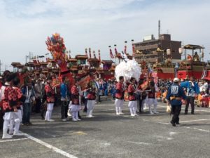 市内北から南から集結した山車18輌が次々に入場し、そして伝統芸能も続いて入場しました。榎戸区の飾り馬はしんがり入場で、全ての皆さんに見守られながらの堂々とした入場でした。