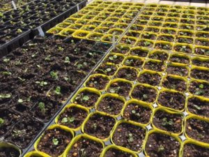 花の苗をポットに移植する作業が行われました。