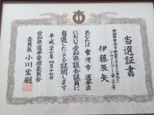 愛知県議会議員選挙、当選証書付与式が行われました。