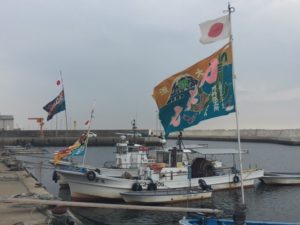 毎年海苔の養殖が始まる直前、魚の供養、豊漁・安全祈願のために蒲池の松仙寺で行われています。蒲池区の秋季大祭と合わせて行い、餅まきも行うので、漁業関係者と区の方たちでいつも賑やかに行われます。