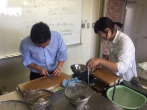 漁業士の皆さんの努力により、こうして若いお母さん方に魚食の普及を図れるのは素晴らしいことであり、また皆さん楽しそうに魚を料理している姿が、この行事の有意義さを物語っていました。