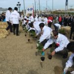 常滑中学校の生徒およそ20人とともに、参加者は「鯉江方寿翁の歌」を歌いました。歌詞は実に12番まであり、常滑が焼き物の町として隆盛を誇っていたころの光景がおもい浮かびます。焼き物業界にとって、次の世代へ技術を継承することはとても大切なことであります。合わせて、常滑の子どもたちには、常滑焼は故郷の誇りであるという気持ちを持ってもらいたい。常滑市民としてのアイデンティティーを持ち、社会人となっても全国で活躍する中で、常滑焼の素晴らしさを発信していってほしいと願っています。本日このような行事に出席したことが、郷土教育へとつながることを期待しています。
