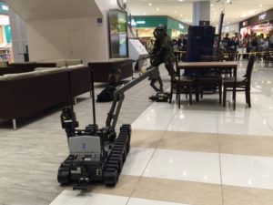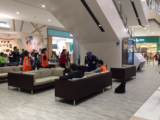 イオンモール内に所有者の分からないカバンがあり、警備員がチェックしたら爆弾のようなものであり、警察に通報し、消防署等と協力し、爆弾かどうかを確認し処理するところまでの訓練でした。