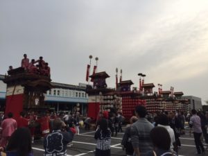 常滑地区は6台の山車が運行され、ギャラリーも含めて多くの人で賑わっていました。市役所前で行われる各地区の市長答礼は圧巻で、それぞれの山車(地区)の色というものが出ていました。