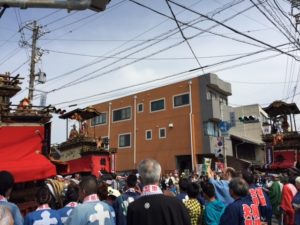 また山車祭りとしては常滑で今年最後となる大野祭りが行われ、3台の山車が交差点に集結する「出会いの儀」に参加させていただきました。山車も囃子も文化財という歴史と伝統ある祭りです。本年はサミット開催にご協力いただき、例年の5月開催から4月に日程を変更していただきました。