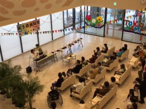 1階ロビーでは各種音楽演奏やダンス、院内をチンドン屋さんたちが練り歩くなど、工夫盛りだくさんの病院祭でした。