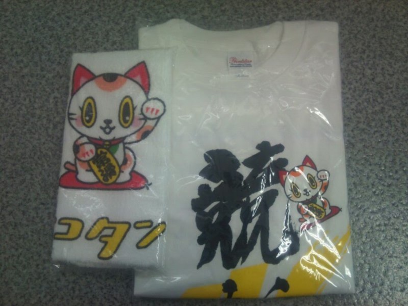 事業部もそういうことであればと、倉庫の中を捜して頂き、30枚ほどのTシャツとタオルを頂きました。