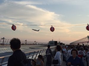 序盤に音響機器のトラブルがあったものの、その後は順調に、そして涼しい中で行われました。離陸する飛行機を眺めながらの盆踊りは常滑ならではのもの、素晴らしいひと時です。