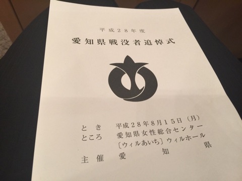 昨日は終戦の日、私は愛知県戦没者追悼式にてご英霊の御霊に哀悼の意を捧げました。