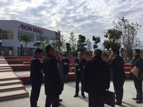 1ヶ所目はイオンモール常滑(常滑市)にて中部臨空都市の概要について愛知県企業庁企業誘致課長から、イオンモールの取組について岡田GMからそれぞれ説明がありました。中部国際空港や地元自治体との連携であるCATプロジェクト等、いかに地域と連携した中で、商業施設としての役割を果たしていくかなど話していただきました。