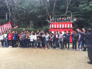 神明社に行くと沢山の外国人の方が。12月の半ばに来日し、榎戸にある寮で1ヶ月日本について勉強し、全国の工場にて技術研修をするそうです。