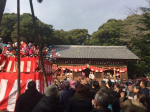 神事や巫女舞も大勢で見ていましたが、とても寒そうでした。また午後に行われた厄歳連中による餅まきには多くの区民が集まり、その中には先ほどの外国人研修生の姿もあり、皆さん楽しそうに餅を集めていました。