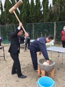 私の役割は餅つき。指導者の皆さん、保護者の皆さん、素晴らしい初蹴りをご準備いただき、ありがとうございます。